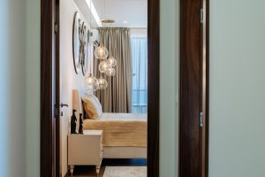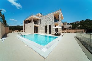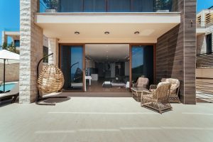 Alpha – The villa has an area of 450 m2. 4 bedrooms and 5 bathrooms and a private pool. On the ground floor there is a large living room, a fully equipped kitchen, one bedroom, one bathroom, and a laundry room. On the second floor there are 3 bedrooms, 3 bathrooms and 2 dressing rooms and 2 terraces. The third floor has an office, a bathroom, a free area and a huge terrace.